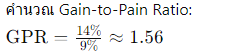 โดยสรุป Gain-to-Pain Ratio เป็นเครื่องมือที่มีประโยชน์ในการประเมินผลตอบแทนเทียบกับความเสี่ยงที่เกิดขึ้นจากการลงทุน ช่วยให้นักลงทุนสามารถตัดสินใจได้ดีขึ้นในการจัดการพอร์ตการลงทุนของตนเอง